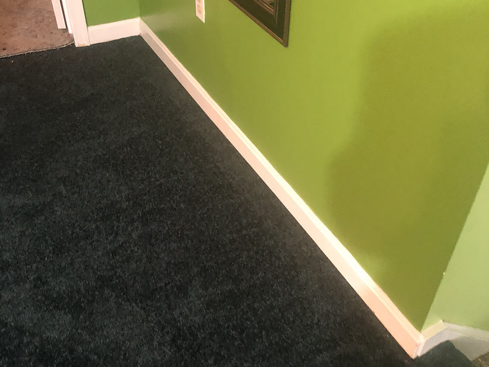 Rich green color carpet Installation in progress. with life time stain resistance warranty