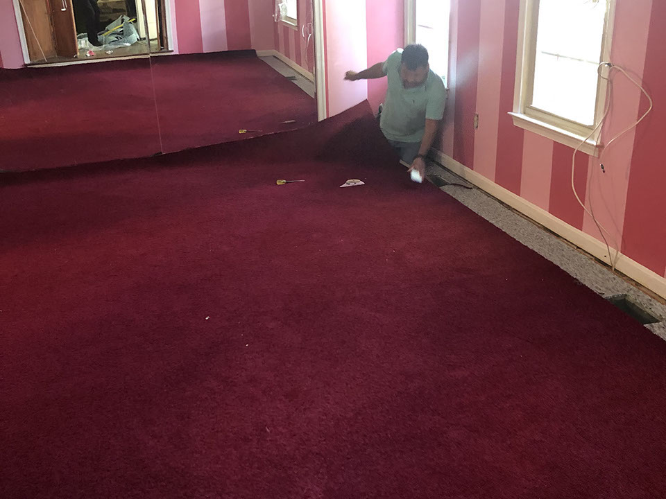 Rich Burgundy color carpet Installation in progress. with life time stain resistance warranty.