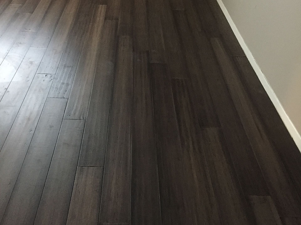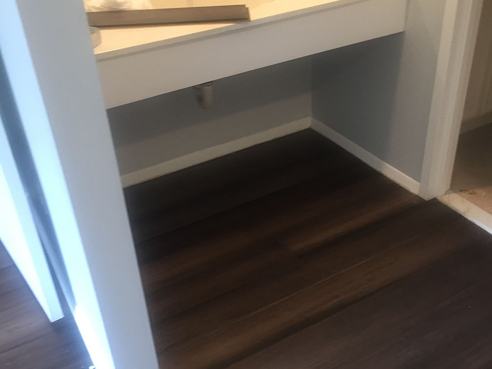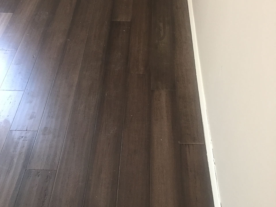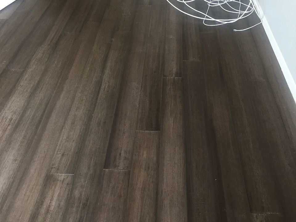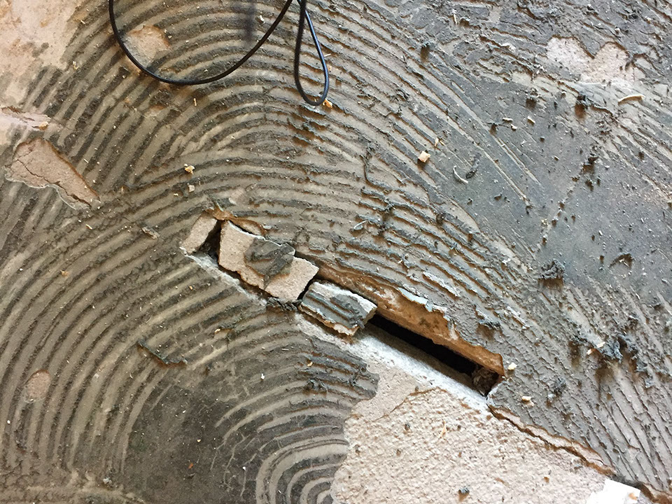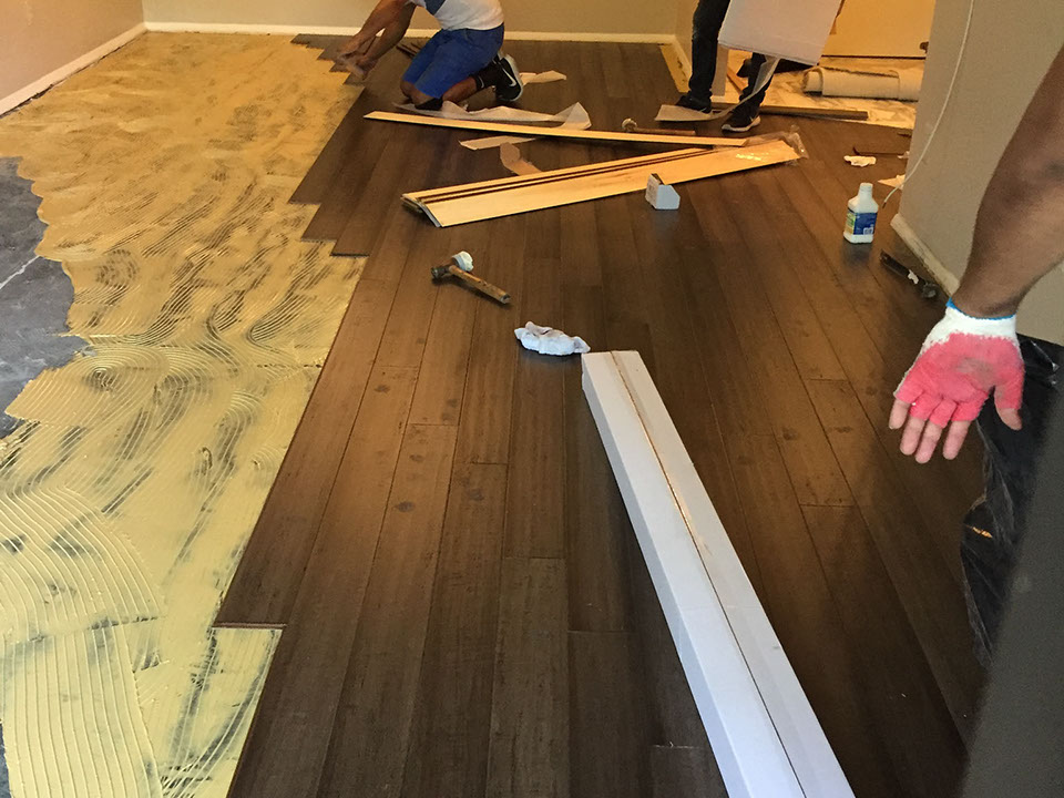 What you are looking at is the process of gluing down the Engineered wood after leveling the damaged concrete.