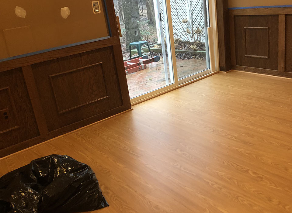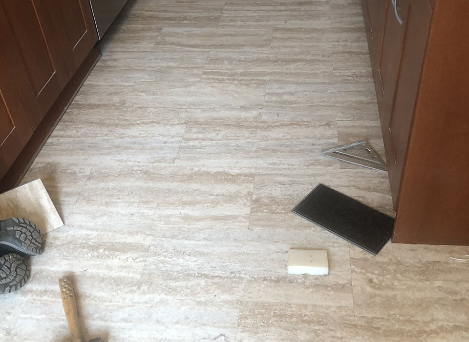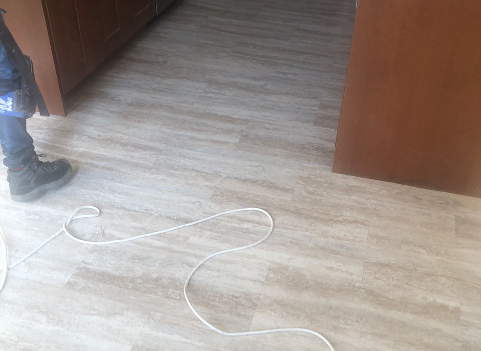 Kitchen with lifetime water damage warranty LVT over under layment