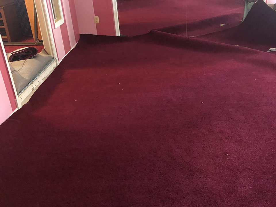 Rich Burgundy color carpet Installation in progress. with life time stain resistance warranty.