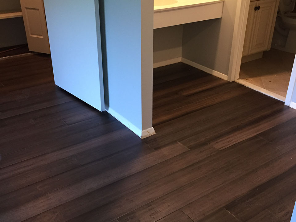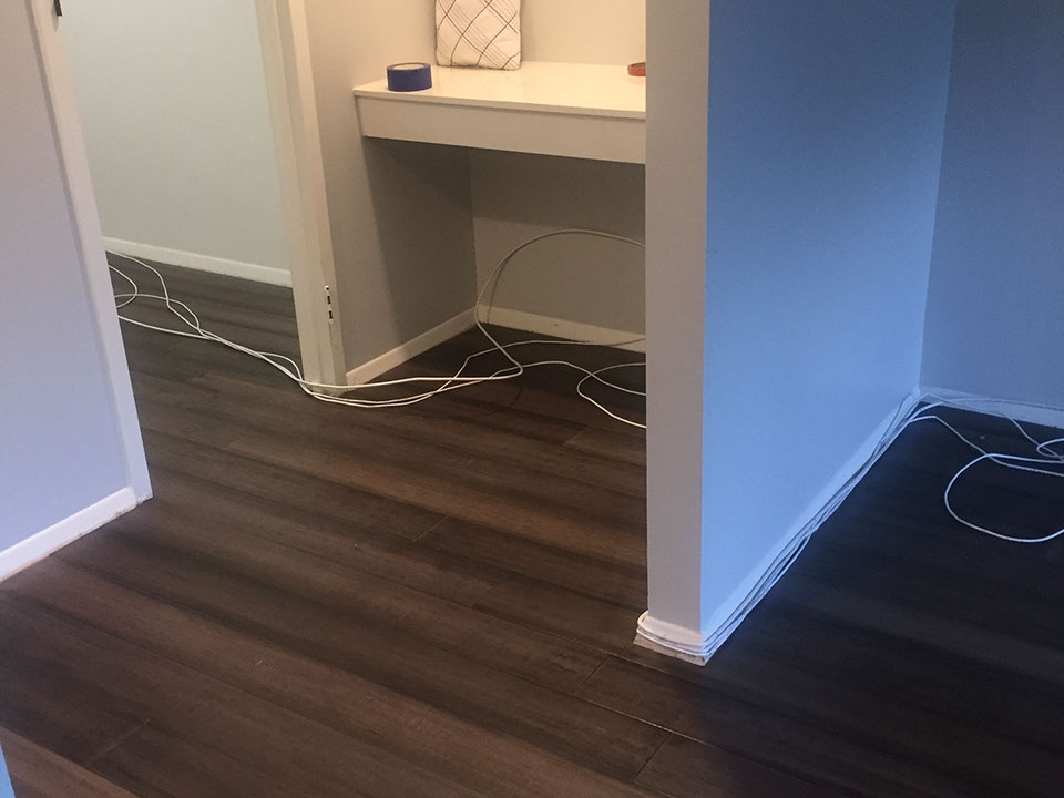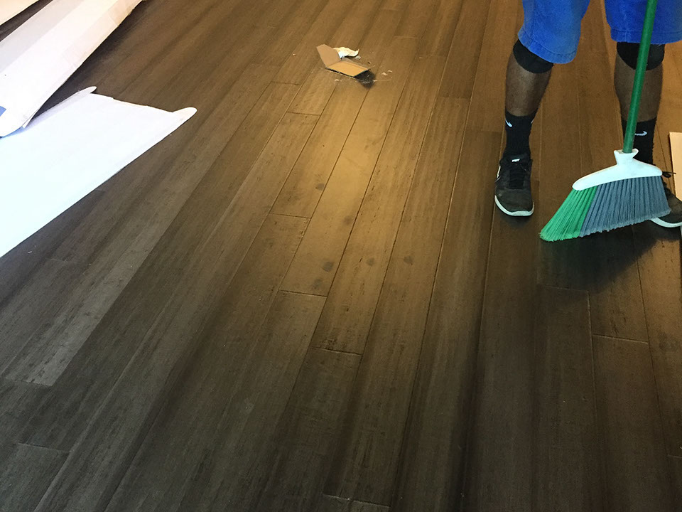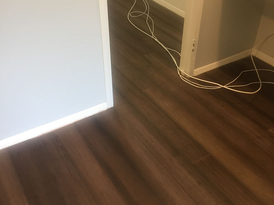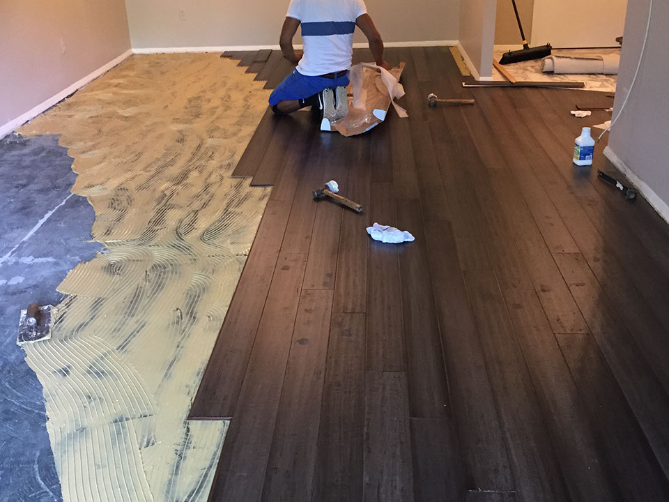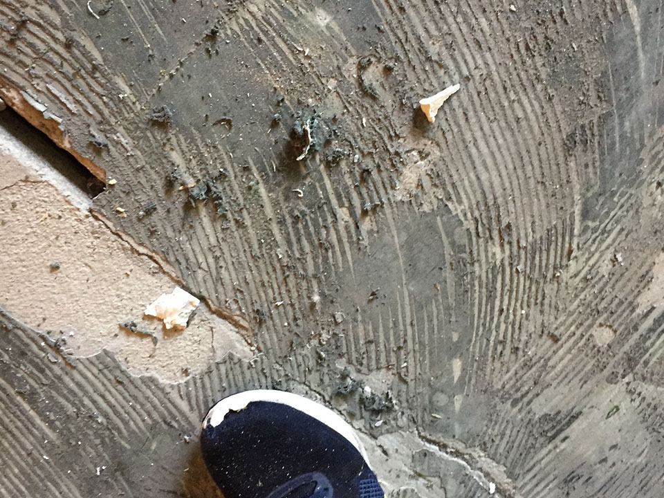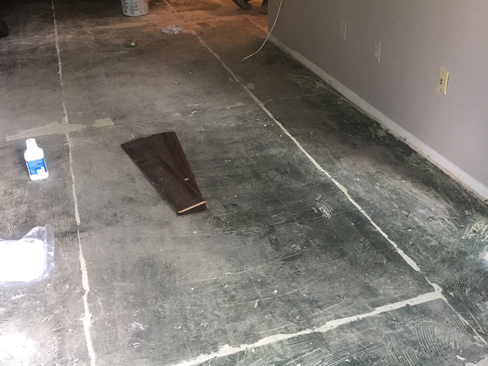 What you are looking at is the process of gluing down the Engineered wood after leveling the damaged concrete.